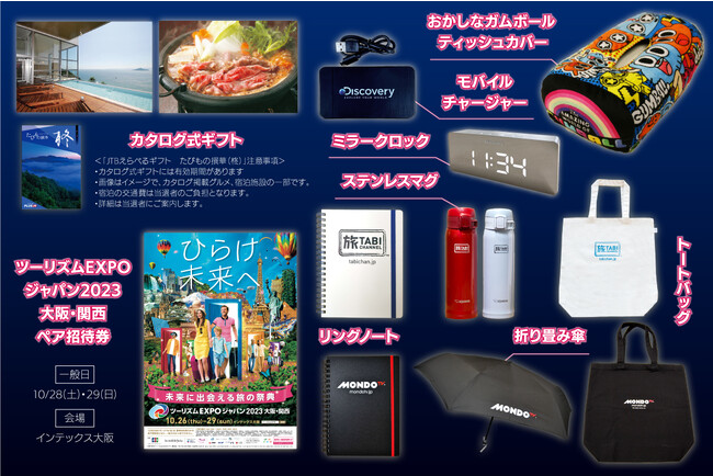 また、総額200,000円が当たる『鉄道の日記念!4チャンネル連結特別編成』のプレゼントキャンペーンを実施します。30,000円分の旅のカタログ式ギフトから、ツーリズムEXPOジャパン2023大阪・関西招待券や、各チャンネルのオリジナルグッズをプレゼントいたします。