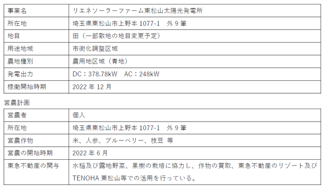 <参考>リエネソーラーファーム東松山太陽光発電所について