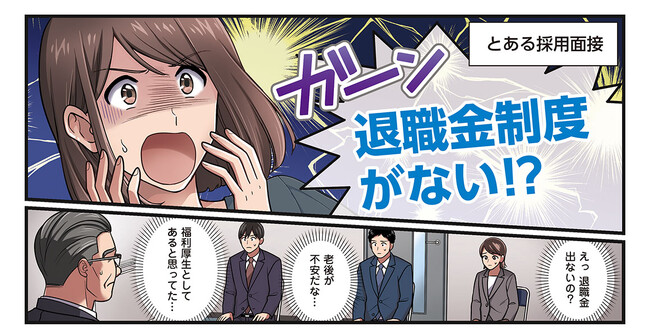 2023年10月2日(月) より、BSフジ、BSテレ東、SNS等にてTVCMを放映します。CMでは、面接に来る若者が、福利厚生として退職金制度がない不安を意識した構成となっています。