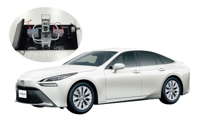 実験で水から水素を作り、そのエネルギーや燃料電池自動車の仕組みについて学べます。