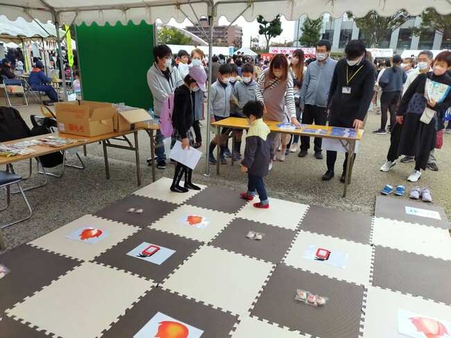 ヘルメットや非常用トイレ、防災用スリッパなどを使ったミニゲームで、防災用品を身近に感じていただきます。