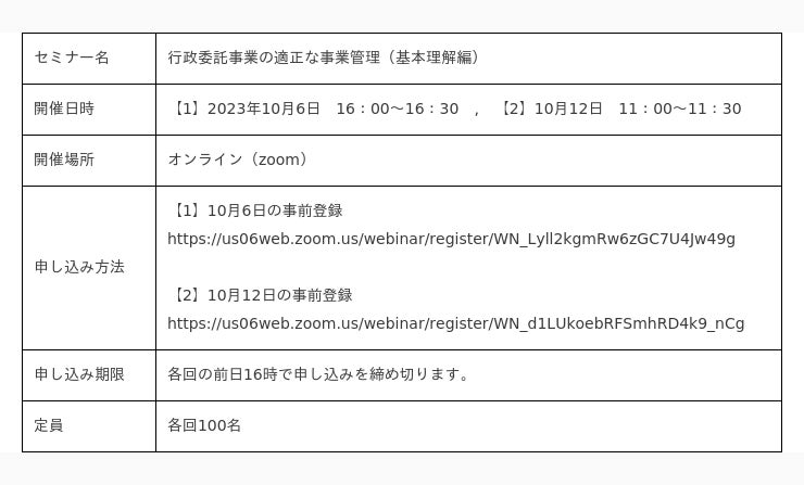 10月の無料セミナー「行政委託事業の適正な事業管理(基本理解編)」を開催