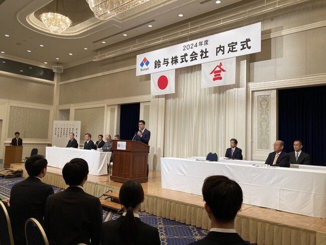 鈴与株式会社(本社:静岡市、代表取締役社長:鈴木 健一郎)は、10月2日 (月)、2024年4月入社を予定している39名(G職35名・A職4名)の内定式をホテルグランヒルズ静岡にて開催しました。