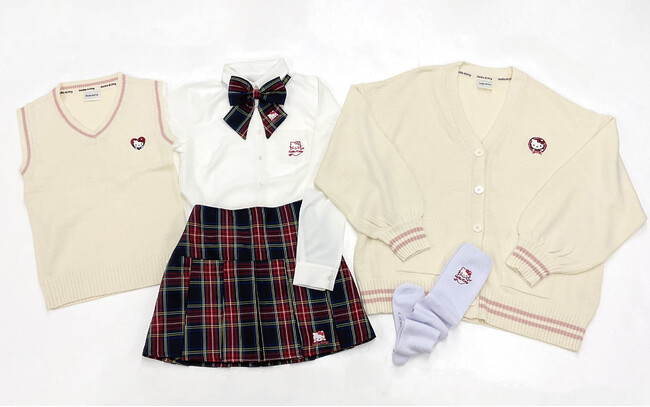 ■ハローキティシリーズ制服・ワッペン付きニットカーディガン:https://www.sanrio.co.jp/news/goods/mx-donki-schooluniform-20231004/