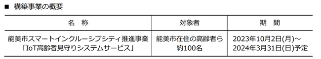 今回の能美市の「IoT高齢者見守りシステムサービス」は、この活用第一弾となります。