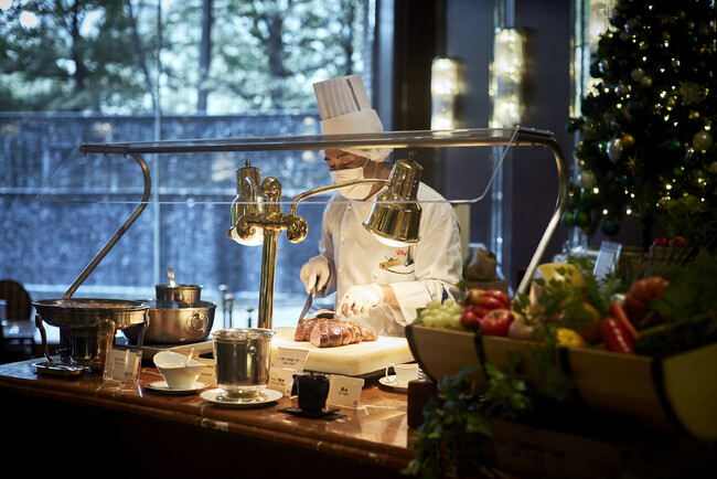 種類豊富な野菜とドレッシング、トッピングで自分ならではの味わいを楽しめるパワーサラダをはじめ、鮮やかな冷製料理、身も心も温まる温製料理のほか、チョコレートファウンテン、ブッシュ・ド・ノエルなど、クリスマスムードあふれるデザートもご提供いたします。クリスマス装飾が施された空間で心ゆくまでシェフこだわりの美味をご賞味ください。