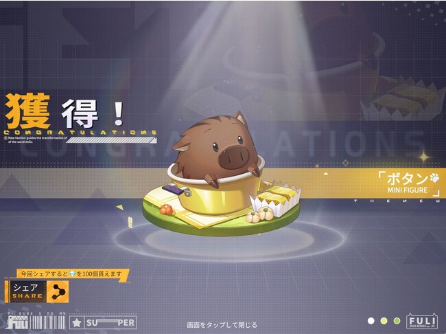 内容:藤林杏のペットであるウリ坊の「ボタン」が、ゲーム内に“アートトイ”として登場。アートトイは、戦闘のときに様々な効果でサポートしてくれるフィギュアの仲間です。ゲーム内「アートトイ」→「トレンド光年」から獲得できます。