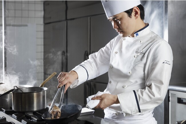 松本博史。長野県出身。東京のレストランでスーシェフとして経験を積み、2015年に星野リゾート 軽井沢ホテルブレストンコートへ。2017年ブレストンコート ユカワタン料理長に就任。古典的な調理技法を大切にしながら、それを現代の形にしていくことでフランス料理の魅力を伝えていきたいと語る松本シェフ。時を経ても色褪せない、タイムレスな料理が信条です。