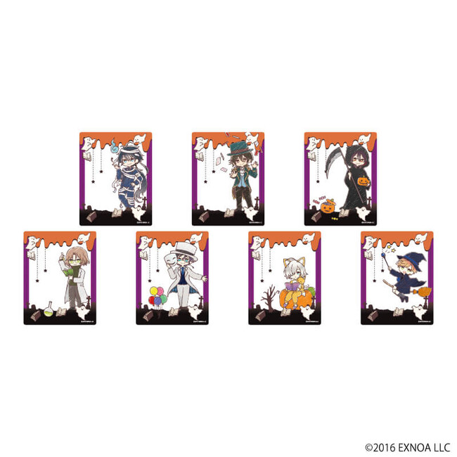 アクリルカードは、およそ7cm×9cm。手帳に挟んだりポーチにしまったりすれば、どこにでも持ち運びしやすいグッズです! 文豪たちの周りで、オバケたちがハロウィンの飾り付けをしている可愛らしいデザインにもご注目♪