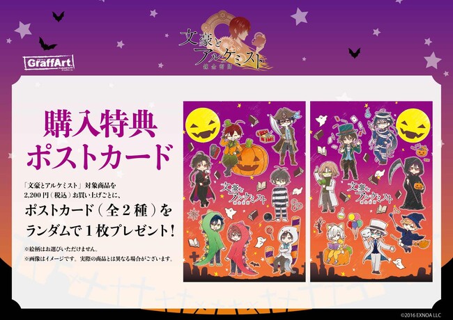 『文豪とアルケミスト』の対象商品を2,200円(税込)お買い上げごとに、購入特典としてポストカード(全2種)をランダムで1枚プレゼント!