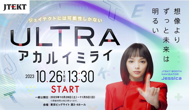 株式会社ジェイテクト(本社:愛知県刈谷市、取締役社長:佐藤和弘、以下「ジェイテクト」)は、一般社団法人日本自動車工業会が主催する「ジャパンモビリティショー2023」(一般公開:10月28日~11月5日、東京ビッグサイト)にブース出展いたします。「ULTRAアカルイミライ」をテーマに、単なる製品展示に留まらない体験型プログラムを複数開催。メインコンテンツの進行役にはバーチャルYouTuber(Vtuber)を起用し、未来感あふれる演出でジェイテクトの取り組みを発信します。報道機関向けのプレスデーにあたる10月26日には、賞金100万円を副賞としてデザインを公募した企業マスコットキャラクターの発表も予定しています。