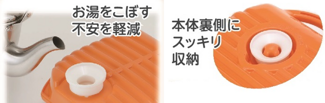 また、湯たんぽ使用時には本体裏側にじょうごを収納することできるため、就寝時など凹凸を気にせずお使いいただけます。