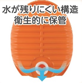 本製品は、注ぎ口を下の方に設置しているため、排水後お湯が残りにくくなっております。また、排水溝の両端にくぼみがあるため、使用後スムーズなお湯の片付けが可能となっています。