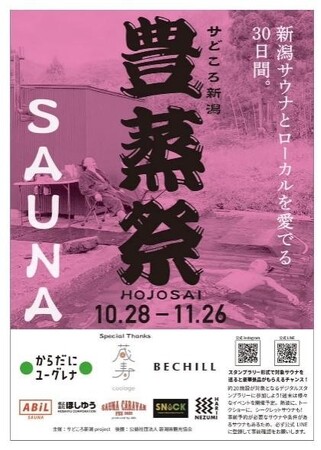 サどころ新潟project(代表:サウナ宝来洲 杤堀 耕一 事務局:株式会社ほしゆう 海老塚 健史)は、2023年10月28日(土)から11月26日(日)まで新潟県内のサウナを有するスーパー銭湯、日帰り温泉、宿泊施設、サウナ専門施設等にて、日本最大規模のスタンプラリーイベント「豊蒸祭(読み:ほうじょうさい) 2023」を開催いたします。