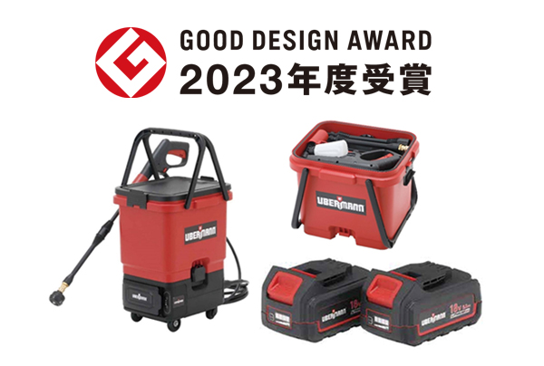 コメリでは、2017年よりグッドデザイン賞へ応募をはじめ、これまで多くのオリジナル商品がグッドデザイン賞を受賞いたしました。本年も「UBERMANN 36V充電式高圧洗浄機 タンクセット」がデザインと利便性の高さを審査委員の皆様に高く評価していただき、2023年度グッドデザイン賞を受賞いたしました。