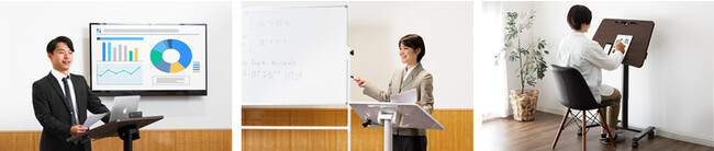 (写真:会議やプレゼンでの使用 / 塾などの講義使用 / ご自宅でのテレワークやデッサンでの使用 )