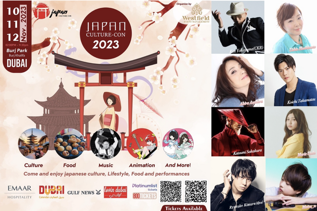 2023年11月10日(金)~12日(日)ドバイの『Burj Park』で開催される。木村善幸、横山剣、橋本潮、麻倉あきら、鷹松宏一ら豪華なステージ出演者が美しい日本文化の素晴らしい体験をもたらす!!