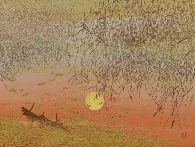 截金、砂子、金泥など古くからの技法を駆使し描かれる作品は、移ろいゆく四季の中で
