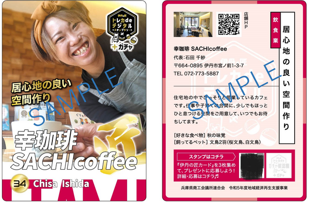 伊丹商工会議所(会頭:小西新右衛門)が「伊丹の匠」として認定された市内店舗の事業主のトレーディングカードを作成。トレカは普段知ることの出来ない事業主の趣味や特技なども知ることができる一風変わったカードです。そのトレカを通じて事業所とお客様を繋いでいく企画です。トレカを集めた参加者には参加店で使える「匠品券(しょうひんけん)」などのプレゼントに応募ができ、また伊丹商工会議所に行くとガチャにも参加できます。