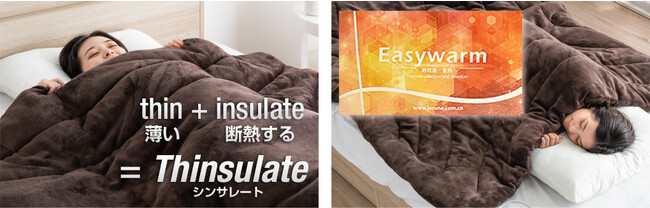 本製品は「シンサレート」と「イージーウォーム」の2種類の高性能な素材を使用することで、暖かい空気が逃げることも冷気が侵入することもなく、暖かく快適にお休みいただけます。