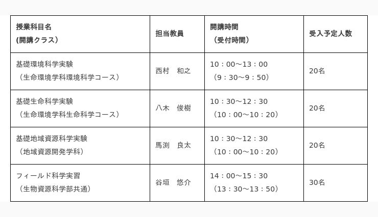 ※「基礎環境科学実験」の開講時間は、昼休憩を含みます。