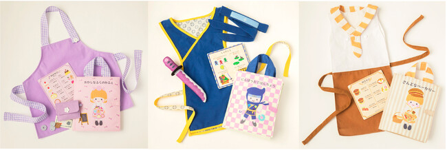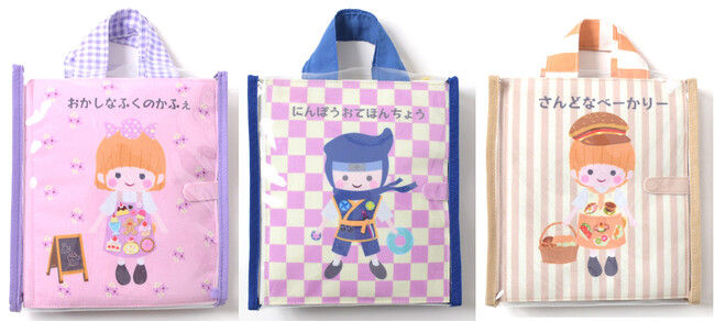 第一弾は、カフェスタッフになりきる『おかしなふくのかふぇ』、忍者になりきり修行をする『にんぽうおてほんちょう』、パン屋になりきり色んなサンドを作る『さんどなベーかりー』の3種を、ナルミヤオンライン(www.narumiya-online.jp)で発売します。