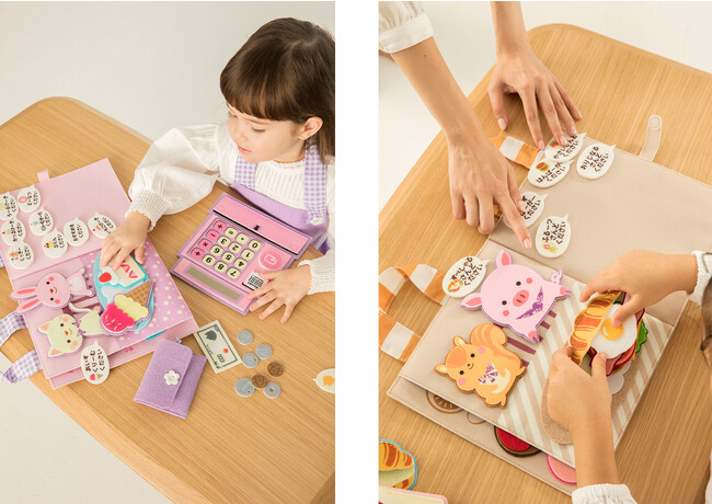 ・お金の支払いやモバイルペイのやり取りなど、大人が日常行っている様子を親子で楽しむことで、コミュニケーションが広がります。