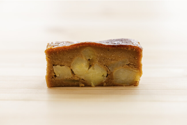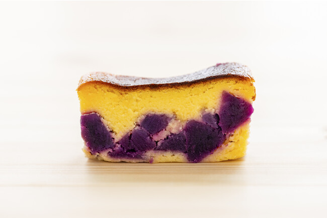 芋本来の味を楽しんでもらいたいという想いから、ケーキの中に約13ミリにカットしたさつまいもキューブをふんだんに使用。滑らかな口溶けだけでなく、さつまいもの食感も大切にしました。