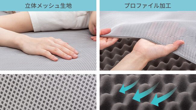 優れた調湿効果と高い消臭・抗菌効果のある竹炭をマットレス本体に練り込んでおり、寝汗による気になる臭いを消臭。さらに、通気性に優れた立体メッシュ生地が、ムレずに快適な目覚めの朝を叶えます。カバーは取り外してお洗濯いただけるのでいつでも清潔です。