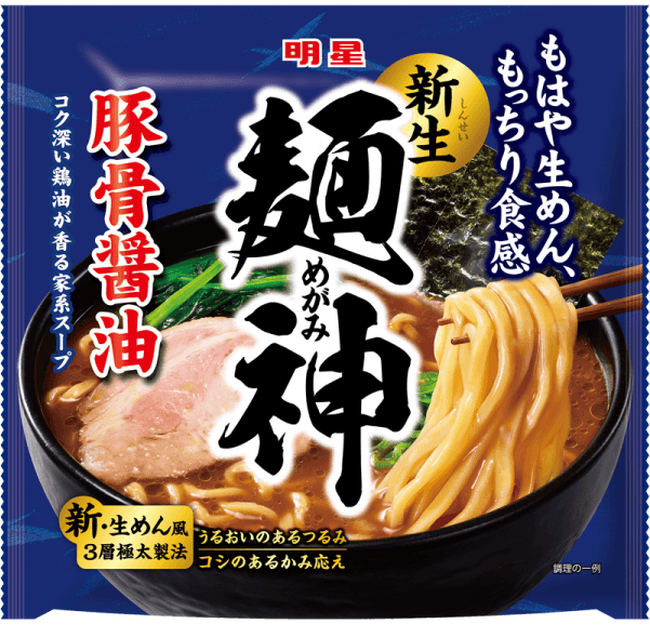 「明星 麺神」が2023年9月18日(月)にリニューアル。麺が3層からなる「3層麺製法」と「乾燥方法」の2つの技術を新たに組み合わせた製麺方法「新・生めん風3層極太製法」で、もはや生めんのようなもっちり食感の別格な麺に生まれ変わりました。この新生「麺神」の別格のおいしさを伝えるため、新TV-CMを放映します。