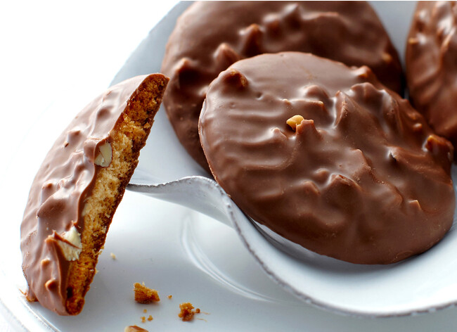 大小に砕いた香ばしいアーモンドをのせたクッキーと、まろやかな味わいのベルギー産クーベルチュールチョコレートの黄金バランスが生み出す味わい。一度口にすれば虜になるおいしさを、ぜひお楽しみください。