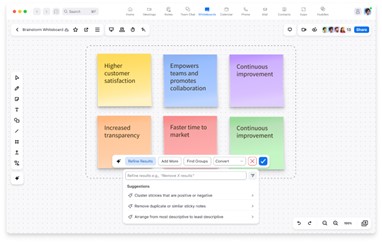 Zoom Whiteboard の新機能では、AI Companion を使用してデジタル ホワイトボードからアイデアを生み出し、分類できるようになるため、チーム作業の迅速化に役立ちます。