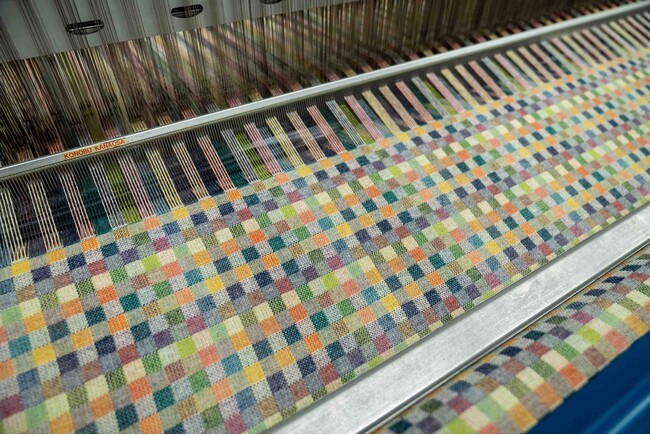 テキスタイルデザイナー須藤玲子のデザインによるリサイクルウールなど日本・尾州で織られた布を纏ったカリモク家具が初お目見えします。
