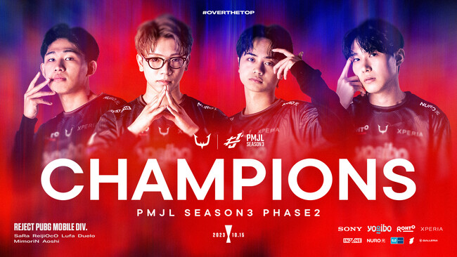 このたび、プロeスポーツチーム「REJECT」を運営する株式会社REJECT(本社:東京都文京区、代表取締役:甲山翔也、以下 REJECT)のPUBGM部門が、PUBG Mobile JAPAN League SEASON3 Phase2で優勝しました。この優勝を含め日本国内リーグでは3連覇という結果となりました。