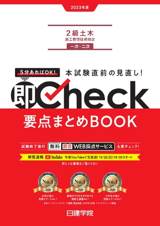 資格取得支援スクールの日建学院を運営する株式会社建築資料研究社(所在地:東京都豊島区、代表取締役社長:馬場栄一)は、2023年10月22日(日)に実施される令和5年度2級土木施工管理技士 一次検定の試験直前対策として、2023年10月18日(水)19:00より「2級土木施工管理技士一次検定(後期)直前Check【知識編】」をYouTube配信いたします。
