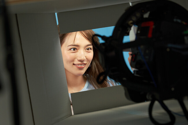 そんな川口さんに自然な笑顔が見られたのが、ボックスを開け中をのぞき込むシーンの撮影。ボックスを開けた際に髪をなびかせるため風を送っていたスタッフ。そのスタッフが風量を間違え強めの風が当たると、カメラに向け真剣な顔を見せていた川口さんも驚いた様子。川口さん含め、スタジオ全体が笑い声で包まれました。