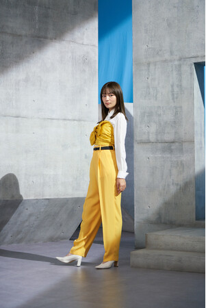 川口さん:黄色のパンツスタイルですね。普段プライベートで(自分で選択して)着ることのないかっこよくてクールな感じですが、色味もすごく好きだし映えるんじゃないかなと思って、お気に入りです。