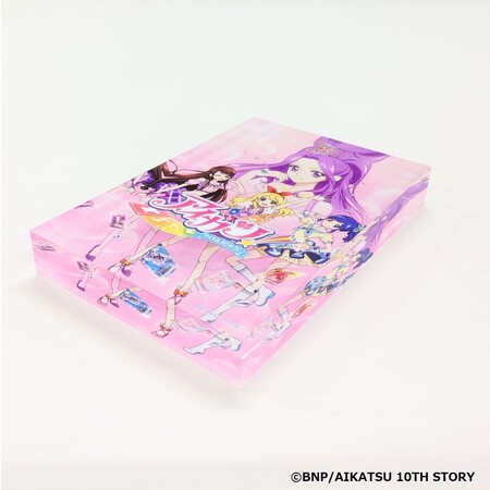 笑顔で仲良く手を繋ぐ6人のアイドルたち……彼女たちが繋いできた「アイカツ!」の重厚な軌跡をそのままアクリルブロックにとじ込めた贅沢な一品です。きっと一生の宝物になるはず♪