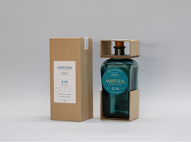 ■角紙管によるクラフトジン「MAWSIM」のパッケージ