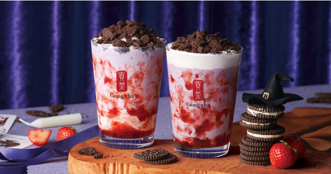 美しい紫色とやみつきになる味わいで、多くのお客さまに愛されているゴンチャの定番メニュー「タロ ミルク」が、ハロウィン仕様に大変身。ストロベリーソースとミルクフォーム、クッキークランチを組み合わせた、見た目も妖しいこの時期だけの特別なドリンクメニューです。