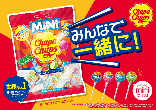クラシエ株式会社(フーズカンパニー)は、世界160カ国を超える国々で、150種類以上のフレーバーを発売してきた世界No.1*のロングセラー棒付きキャンディ「チュッパチャプス」を販売しております。この度、ミニ限定のフレーバー「グリーンアップル」を加えた『チュッパチャプス ミニアソート』15個入りを2023年10月23日(月)より全国のスーパーマーケット、ドラッグストア、コンビニエンスストアなどで順次店頭販売開始します。“世界No.1”のマークがついた新パッケージが目印です。