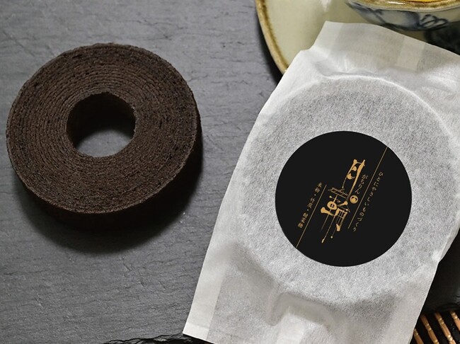 米粉にエシカルバンブーの竹炭を使った真っ黒なバウムクーヘン。竹炭はミネラルが豊富で腸内環境を整えると言われています。