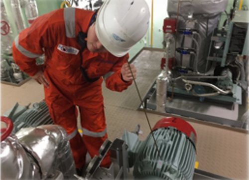 聴音棒は機器の状態検査の為に使用される細長い金属棒で、船や工場で広く使用されています。タービンやモーターなどの検査対象箇所に聴音棒をあてることで、周囲の騒音に影響されず対象物の音を捉えることができ、機器内部の目に見えない異常を音で検知することができます。一方で、音による異常検知はデータとしての蓄積が難しく、第三者と共有できないという課題がありました。
