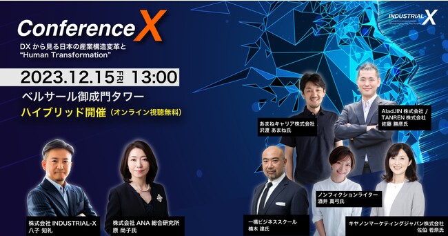 デジタルトランスフォーメーション(DX※1)推進を行う、株式会社INDUSTRIAL-X(本社:東京都港区、代表取締役CEO:八子 知礼、以下当社)は、12月15日(金)にDXの先にある “産業の未来” を描き、発信するカンファレンスイベント「Conference X in 東京 2023」を開催することをお知らせします。