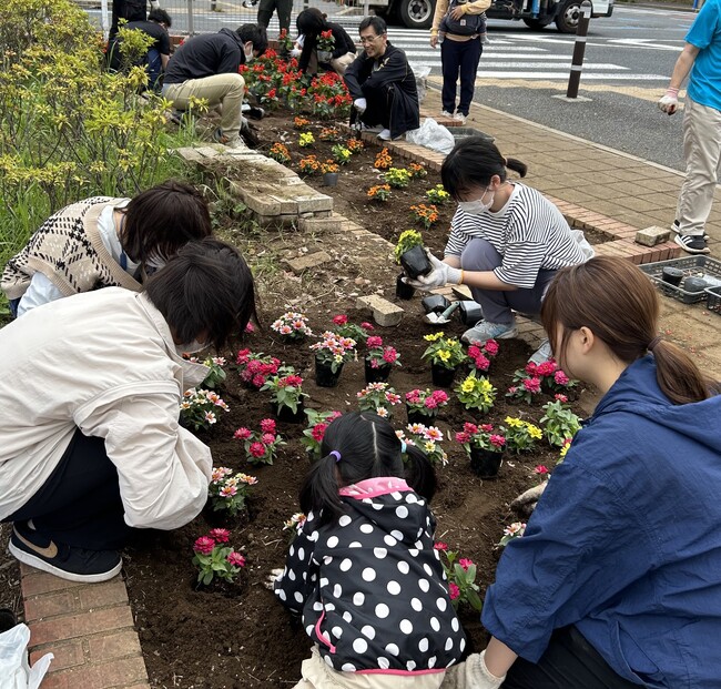 千葉市が行っている「花いっぱい市民活動」の花苗配付の助成を活用し、2013年より毎年春と秋の計2回、近隣住民と合同で花の苗を植えるイベントを行っています。昨年10年目を迎えました。