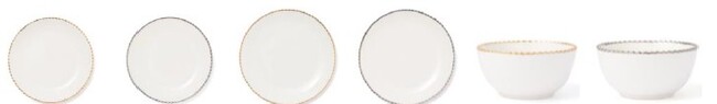 レースのような縁取りにゴールドやシルバーをあしらった、キュートな印象のプレートとボウルです。どんなアイテムにも合わせやすい白い器はいくつあっても便利でメインディッシュからスイーツまで幅広く活躍してくれます。