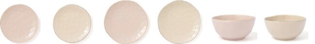 リム部分にさりげなくゴールドを施したプレートとボウルです。表面には槌目のような凹凸を施し表情豊かで有機的なデザインに仕上げました。温もりを感じるフォルムがこだわりのポイント。普段使いからホリデーシーズンの食卓まで幅広く活躍してくれます。