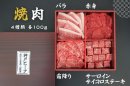 ・焼肉用(サーロインサイコロステーキ・霜降り・赤身・バラ 各100g)
