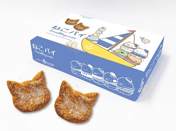 2023年11月から第3弾の映画が公開される「すみっコぐらし」と横浜の「バレルポッド」による、猫の顔の形をしたお菓子(パイ)の商品を発売します。