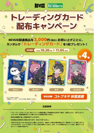 開催を記念し、REVIZE関連商品をお買い上げ3,000円(税込)ごとにトレーディングカード(全4種)をランダムで1枚プレゼント。